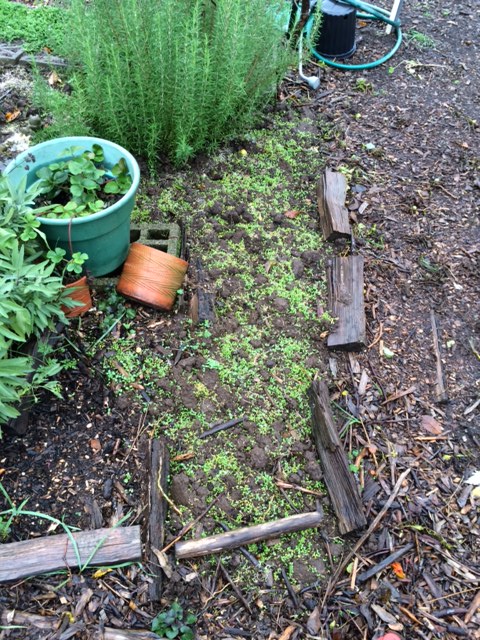 Today I went out to my garden. I took out the tomato and green pepper plants last week, turned the soil and dropped clover seeds on the bare ground. After a week of rain the clover is beginning to sprout. I’ve done a lot of work on my ten foot square plot over the last three years, and I’m happy with my ongoing experiment. I’m not a very knowledgeable gardener but I do manage to get enough tomatoes and green peppers each year to put up a healthy fund of spaghetti sauce.